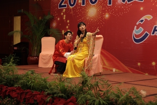 下午3点半,大会在办公室4位美女主持的开场白中进入文艺汇演阶段。此次文艺汇演涵盖了乐器、歌曲、舞蹈、话剧、相声、小品等表演形式,精彩纷呈。首先登场的是姜总的二胡独奏《赛马》,之前以歌声见长的姜总,此次带给大家不一样的节目,其娴熟的演奏博得台下无数“粉丝”的阵阵掌声。由简悦、蒋勇平和张磊带来的舞蹈《change》,让观众感受到长泰青年的奔放与热情。自控部的俊男郭弘成和周正推出的自创相声《出差》,其诙谐和风趣的语风、结合工作生活的点点滴滴,受到台下如潮的喜欢。项目部与财务部联袂演出的话剧《新铡美案》将老戏新编,“陈”、“秦”、“公主”、“包公”等组成的演员阵容给旧故事以新的阐释。另外还有小品《非诚勿扰》、歌曲《爱拼才会赢》等精彩的节目也给观众留下了深刻的印象。