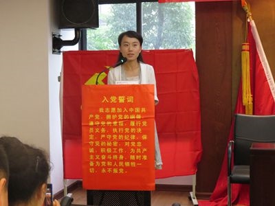 在会上,与宣誓入党的新党员一起,全体参会党员朗声重温了入党誓词。