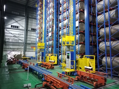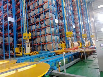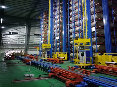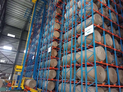 该项目以自动化立体仓库为主体,其中包含了原纸入库输送线、全自动立体库以及残卷回流输送线,结合客户实际生产需求,长泰公司首次在项目中采用基于RFID自动识别技术,攻克了芯片无法附着和识别成功率低的难题。该立库总货位数为8912个,货位最大存储纸卷规格为2800mm(幅宽)*1400mm(直径),单元承载的最大重量为3100kg,6台堆垛机负责原纸和残卷的出入库调度,可完成150卷/小时的出入库量,较好地满足了客户对立体仓库出入库的业务需求,大大节省了产品采购、存储以及生产方面的人力成本。立库中采用的基于库存的可视化系统,能让客户更加直观地随时分析当前库存情况。