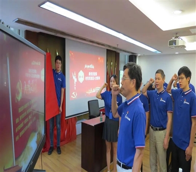 在公司党委书记、董事长简泽丰同志的带领下,党员们面对鲜红的党旗,庄重宣誓:“我志愿加入中国共产党,拥护党的纲领,遵守党的章程,履行党员义务,执行党的决定,严守党的纪律,保守党的秘密,对党忠诚,积极工作,为共产主义奋斗终身,随时准备为党和人民牺牲一切,永不叛党!”庄严肃穆的宣誓活动,使每一位党员再一次接受了心灵的洗礼。