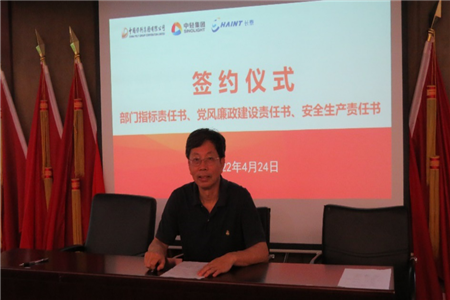 会上,党委书记、董事长简泽丰与各部门分管领导、各部门主要负责人签订了2022年度党风廉政建设责任书,李杰辉总经理与各部门主要负责人签订了2022年度经营目标责任书和安全生产责任书。