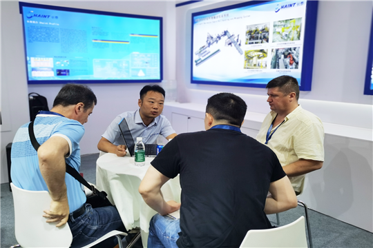 开展期间,众多海外客户莅临长泰展位,营销经理详细介绍了面向非织造行业的新一代布卷自动输送、包装、仓储等整体解决方案以及数字技术,客户对中轻长泰的数字化解决方案及创新技术给予了高度评价,并表达了浓厚兴趣,纷纷计划会后进一步咨询洽谈。