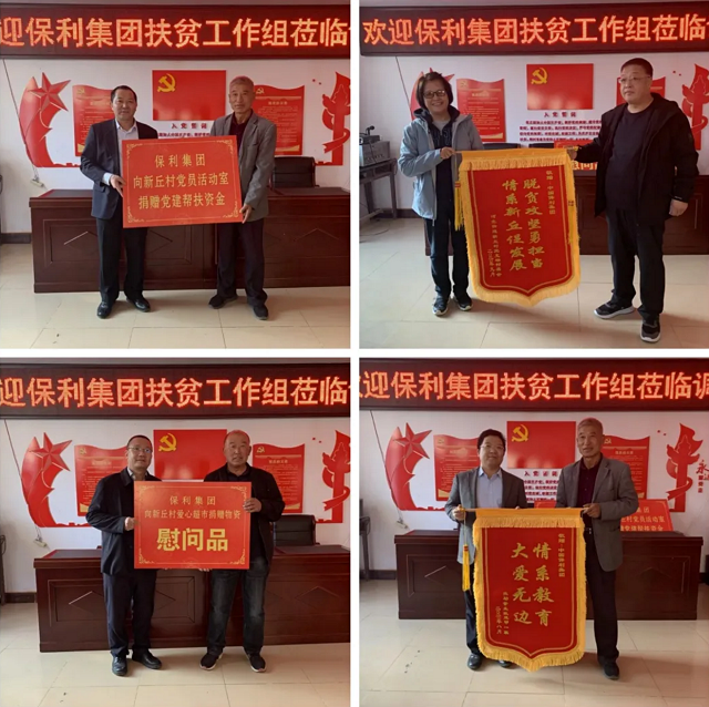 调研组一行来到新丘村贫困户苏国军家中,向其送上慰问品、慰问金;实地考察了保利集团在新丘村的产业扶贫项目育苗基地以及新丘村村委会、新丘村爱心超市,并向新丘村捐赠帮扶资金及慰问品,新丘村党支部及受助学生家属向保利集团赠送锦旗;参观了牛家营子镇中药材产业基地,详细了解其产销模式。