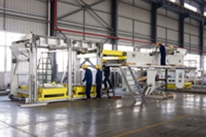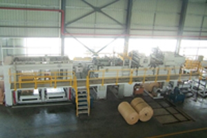 令纸包装机生产过程:平板纸垛进料、上料、取纸、包装纸自动覆盖、自动施胶、封胶、折边施胶封胶。