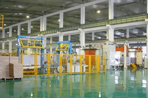 自动型平板纸垛拉伸膜包装机:平板纸垛自动输送、自动引膜和断膜、自动捆扎,整个包装过程除放置标签、放置木顶板外全部由机器自动完成;生产能力:40-60个标准垛/小时,系统配旋转输送机,1台加压捆扎机生产能力为40标准垛/小时,系统配2台捆扎机生产能力为60标准垛/小时,其中1台带加压。