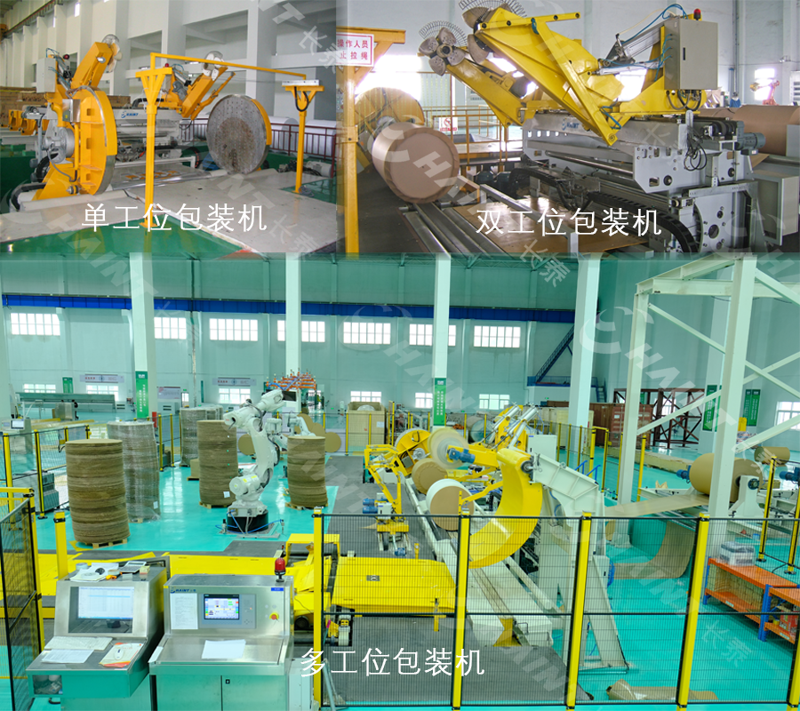 主要用于纸卷的牛皮纸包装,包含对中、内外封头放置、牛皮纸包装、热压合等功能。适用于各类文化纸、白卡纸、特种纸等纸种。