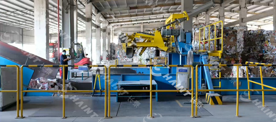 自动剪抽铁丝机用于废纸包前段处理系统,将废纸包上的铁丝或捆扎带自动剪断,并自动抽取出来。