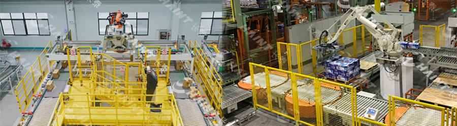 箱件智能码垛系统用于代替人员完成纸箱码垛工作,把劳动力从简单繁重的劳动中解脱出来,同时在保证在安全的前提下实现高效工作,设计码垛速度达1800箱/小时。与人工码垛相比,机器人码垛更加整齐,搬运过程中对纸箱的损耗更小。