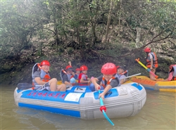 下午,大家有的同事结伴,有的家人同行,乘坐皮划艇,顺流而下,在急流中感受舟顺水而行的快乐,拐弯时的碰撞,溅起的水花,伴随着不断的欢笑尖叫,好不快乐!到了漂流终点,大小朋友们都舍不得下船,还想再来一次!